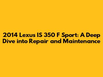 2014 Lexus IS 350 F Sport: Comprehensive Repair Guide