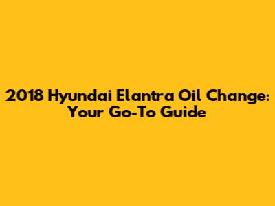 2018 Hyundai Elantra Oil Change: A Complete Guide