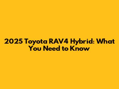 2025 Toyota RAV4 Hybrid: What You Need To Know