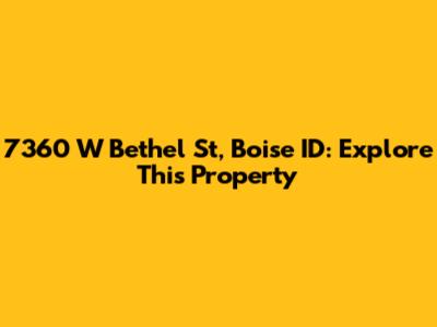 Hey guys! Let's dive into the details of the property located at 7360 W Bethel St, Boise, ID 83704. This address pinpoints a specific location within Boise, Idaho, and if you're anything like me, you're probably curious about what makes this place tick. Whether you're looking for a new home, researching properties, or just plain curious about the neighborhood, we've got you covered. Grabbing the essentials like the exact location is just the beginning; we're going to dig into what makes this address a notable spot. The location itself can tell you a lot – is it close to downtown? Are there parks nearby? What about schools? These are the kinds of questions we'll be answering, so stick around. Boise, as a whole, is a vibrant city with a lot to offer, and this particular address is nestled within its unique landscape. We’ll explore everything from the local amenities to the overall vibe of the area. Imagine driving up to this address – what kind of neighborhood do you picture? Is it a bustling street or a quiet, tree-lined lane? We'll paint a vivid picture for you, so you'll feel like you're right there with us. So, let's get started and uncover the story behind 7360 W Bethel St, Boise, ID 83704. By the end of this, you'll have a solid understanding of what this address represents and why it might be the perfect spot for you or just an interesting place to know about.