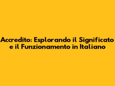 Che Cosa Significa Accredito?