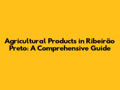 Agricultural Products In Ribeirão Preto: A Comprehensive Guide