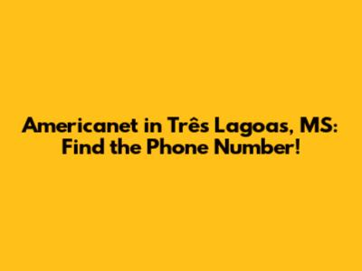 Americanet In Três Lagoas, MS: Find The Phone Number!