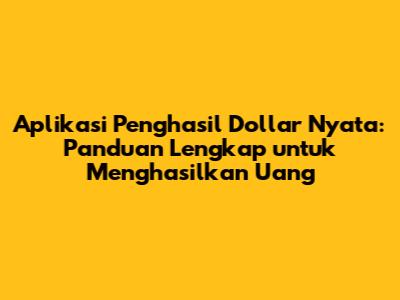 Aplikasi Penghasil Dollar Nyata: Cara Mudah Dapat Uang