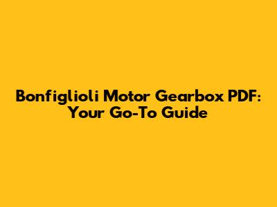 Bonfiglioli Motor Gearbox PDF: Your Go-To Guide