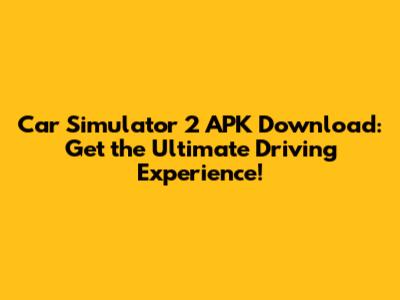 Hey car enthusiasts, are you ready to rev your engines and dive into the most realistic driving simulation available on mobile? We're talking about Car Simulator 2, guys, and if you're looking to download the APK, you've come to the right place. This game isn't just about driving; it's about immersing yourself in a virtual world where your car is your kingdom. From customizing your ride to exploring vast open-world maps, Car Simulator 2 offers an unparalleled experience for anyone who loves cars and wants to feel the thrill of the open road right from their smartphone or tablet. Forget those clunky, unrealistic driving games; this one is designed to give you the real deal. We'll guide you through everything you need to know about getting your hands on the Car Simulator 2 APK, ensuring you can start your engine and hit the asphalt in no time. So buckle up, because we're about to explore this incredible game and how you can download it.