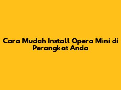 Cara Mudah Install Opera Mini Di Perangkat Anda