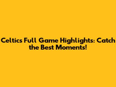 Celtics Game Highlights: Watch The Best Moments!