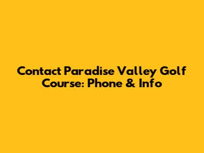Contact Paradise Valley Golf Course: Phone & Info