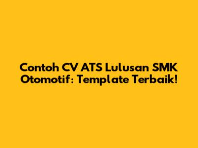 Contoh CV ATS Lulusan SMK Otomotif: Template Terbaik!