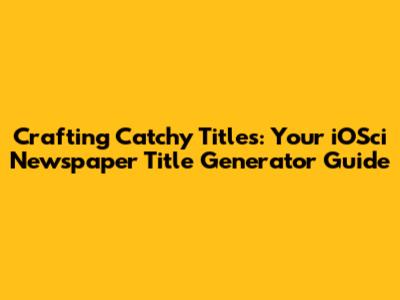 Crafting Catchy Titles: Your IOSci Newspaper Title Generator Guide