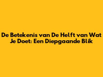 De Betekenis Van 'De Helft Van Wat Je Doet': Een Diepgaande Blik