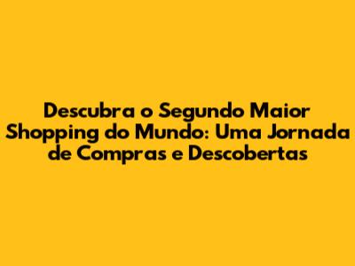 O mundo do varejo é fascinante, e os shoppings centers são verdadeiros pilares dessa indústria. Eles oferecem muito mais do que apenas lojas; são centros de entretenimento, gastronomia e convívio social. Mas você já se perguntou qual é o segundo maior shopping do mundo? Prepare-se para uma viagem de descobertas, porque vamos explorar um gigante do varejo que encanta milhões de pessoas anualmente. Neste artigo, vamos mergulhar no universo do shopping, destacando suas características, história e o que o torna um destino tão especial. Vamos nessa?