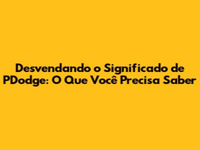 Desvendando O Significado De PDodge: O Que Você Precisa Saber