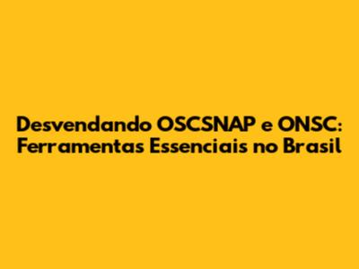 Desvendando OSCSNAP E ONSC: Ferramentas Essenciais No Brasil