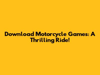 Download Motorcycle Games: A Thrilling Ride!