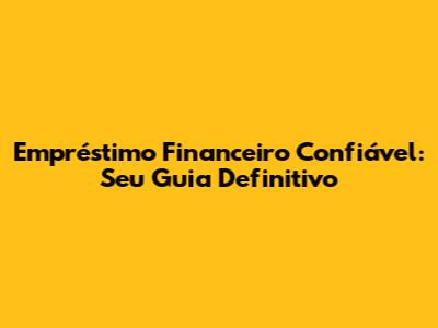 Empréstimo Financeiro Confiável: Guia Completo E Sem Complicações
