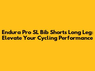 Why Choose Endura Pro SL Bib Shorts Long Leg?