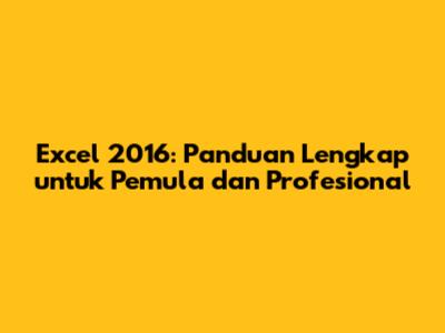 Excel 2016: Panduan Lengkap Untuk Pemula Dan Profesional