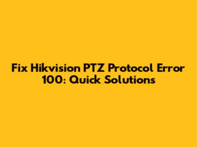 Fix Hikvision PTZ Protocol Error 100: Quick Solutions