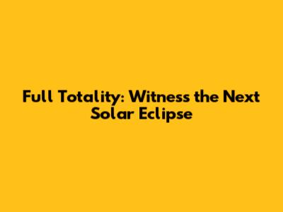 Full Totality: Witness The Next Solar Eclipse