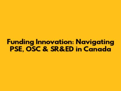Funding Innovation: Navigating PSE, OSC & SR&ED In Canada