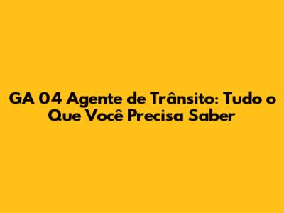 GA 04 Agente De Trânsito: Tudo O Que Você Precisa Saber