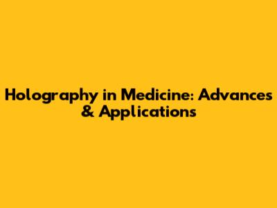 Holography In Medicine: Advances & Applications