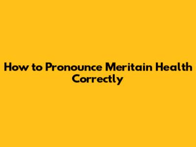 How To Pronounce Meritain Health Correctly
