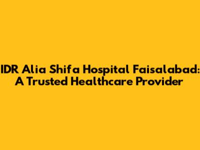 IDR Alia Shifa Hospital Faisalabad: A Trusted Healthcare Provider