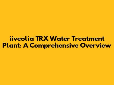 Iiveolia TRX Water Treatment Plant: A Comprehensive Overview
