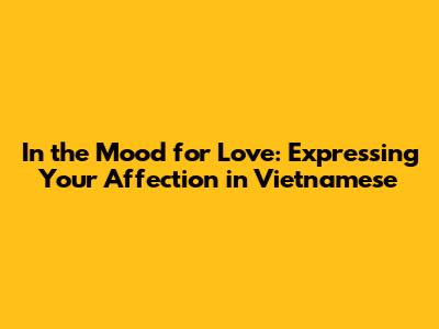 Hey guys! Ever watched Wong Kar-Wai's In the Mood for Love and felt like you wanted to express that same romantic yearning, but in Vietnamese? Well, you've come to the right place! This article will dive deep into how to say "In the Mood for Love" in Vietnamese, explore the nuances of expressing affection, and give you a little cultural context to sprinkle into your romantic endeavors. So, grab your cĂ  phĂȘ sữa đá, settle in, and let's get started!