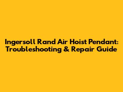 Ingersoll Rand Air Hoist Pendant: Troubleshooting & Repair Guide