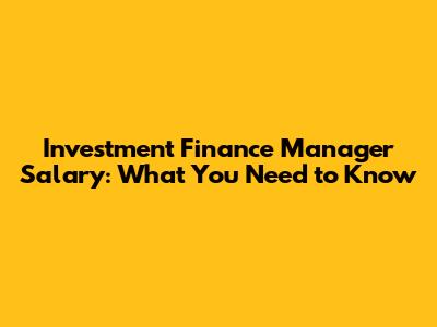 Investment Finance Manager Salary: What You Need To Know