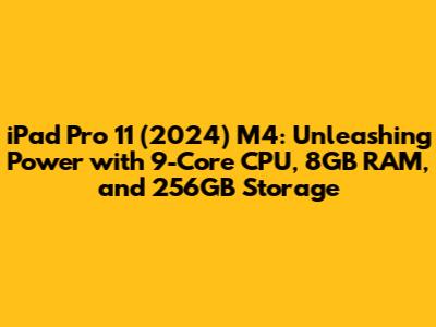 IPad Pro 11 (2024) M4: 9-Core CPU, 8GB RAM, 256GB Storage
