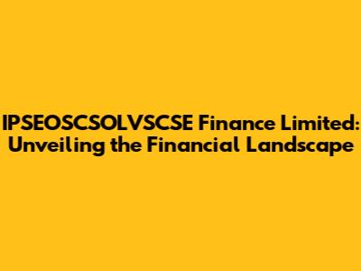 Hey guys, let's dive into something that might sound a bit complex at first: IPSEOSCSOLVSCSE Finance Limited. Don't worry, we'll break it down into easy-to-understand chunks. This article is your go-to guide for understanding what this financial entity is all about, what it does, and why it matters in the grand scheme of things. We'll explore its operations, its role in the market, and some key aspects that make it tick. So, grab your favorite beverage, sit back, and let's unravel the world of IPSEOSCSOLVSCSE Finance Limited together. We're going to cover everything from its basic functions to the more nuanced details, ensuring you have a solid grasp of its significance. Understanding this can be incredibly useful, whether you're a seasoned investor, a budding entrepreneur, or simply someone who wants to know more about how the financial world works. Ready? Let's get started!
