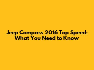 Jeep Compass 2016 Top Speed: What You Need To Know