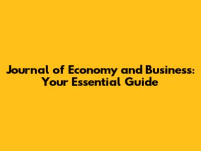 Journal Of Economy And Business: Your Essential Guide
