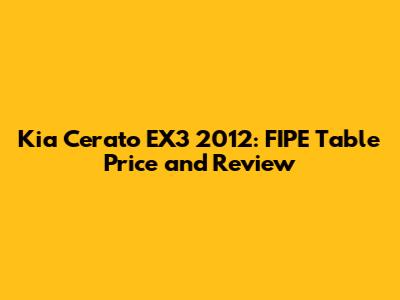 Hey guys! Are you curious about the Kia Cerato EX3 2012 and what it's worth according to the FIPE table? Well, you've come to the right place! Let's dive into everything you need to know about this car, from its price range to its specs and features. Understanding the FIPE table value is crucial whether you're planning to buy or sell, ensuring you get a fair deal. So, buckle up, and let's explore the ins and outs of the Kia Cerato EX3 2012!