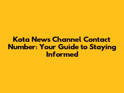 Kota News Channel: How To Contact & Stay Informed