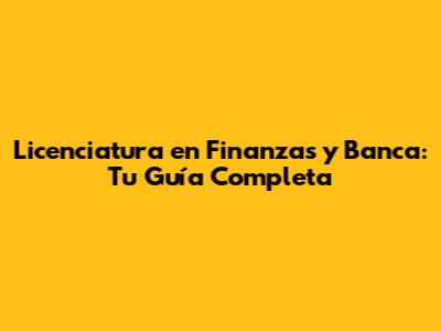 Licenciatura En Finanzas Y Banca: Tu Guía Completa