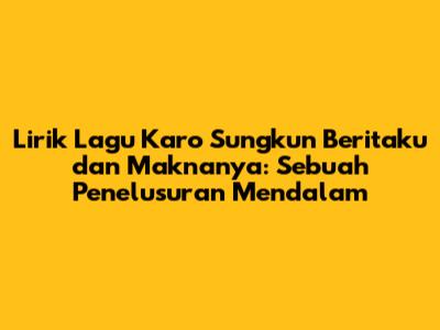 Lirik lagu Karo 'Sungkun Beritaku' adalah kunci utama untuk memahami pesan yang ingin disampaikan oleh si pencipta lagu. Dalam bahasa Karo, 'Sungkun Beritaku' secara harfiah berarti 'Tanyakan Kabarku'. Namun, jangan salah, guys, di balik kesederhanaan judulnya, lagu ini menyimpan kompleksitas emosi dan cerita yang sangat menarik. Liriknya seringkali bercerita tentang kerinduan, harapan, dan juga pengingat akan nilai-nilai kehidupan yang penting. Penulis lirik biasanya menggunakan bahasa yang puitis dan penuh metafora, sehingga setiap barisnya bisa kita maknai secara mendalam. Untuk itu, yuk, kita bedah beberapa penggalan lirik yang paling berkesan dan mencoba memahami pesan apa yang ingin disampaikan.