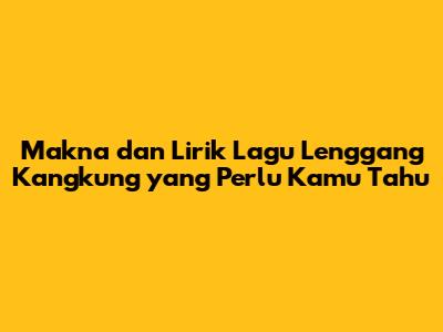 Nah, itu dia guys, pembahasan lengkap tentang makna dan lirik Lagu Lenggang Kangkung. Semoga dengan artikel ini, kalian jadi makin paham dan cinta sama lagu daerah kita ini ya! Jangan lupa untuk terus lestarikan budaya Indonesia, karena itu adalah identitas kita sebagai bangsa. Sampai jumpa di artikel berikutnya!