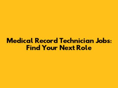 Medical Record Technician Jobs: Find Your Next Role