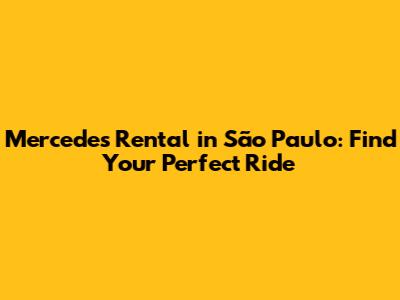 Mercedes Rental In São Paulo: Find Your Perfect Ride