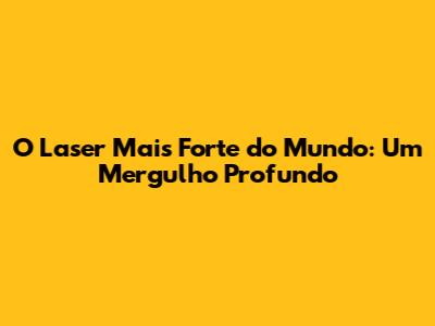 O Laser Mais Forte Do Mundo: Um Mergulho Profundo