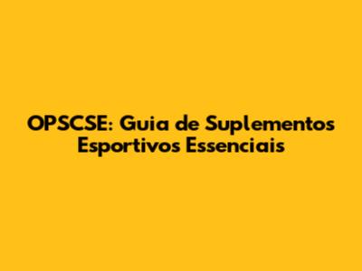 OPSCSE: Guia De Suplementos Esportivos Essenciais