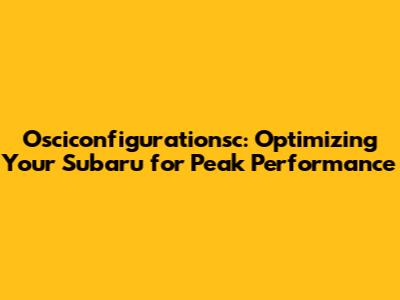 Hey Subaru enthusiasts! Are you looking to unlock the full potential of your ride? Then, let's dive into the world of osciconfigurationsc and how it can transform your driving experience. This guide will walk you through everything you need to know about optimizing your Subaru using osciconfigurationsc.