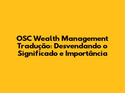 OSC Wealth Management Tradução: Guia Completo E Detalhado