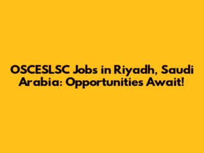OSCESLSC Jobs In Riyadh, Saudi Arabia: Opportunities Await!
